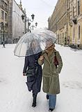 Виды Санкт-Петербурга. Жанровая фотография. Люди под зонтом во время апрельского снегопада.