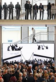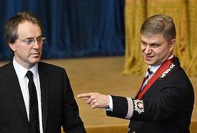 Мероприятие, посвященное празднованию 50-летия начала строительства Байкало-Амурской магистрали (БАМ), в Кремлевском дворце. Генеральный директор - председатель правления ОАО "РЖД" Олег Белозеров во время церемонии вручения государственных наград.
