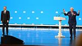 Мероприятие, посвященное празднованию 50-летия начала строительства Байкало-Амурской магистрали (БАМ), в Кремлевском дворце. Президент России Владимир Путин во время мероприятия.