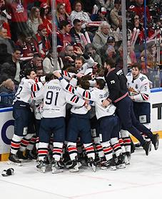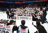 Континентальная хоккейная лига (КХЛ). Чемпионат сезона 2022/23. Плей-офф Кубка Гагарина. Финал. 4-й матч между командами "Локомотив" (Ярославль) - "Металлург" (Магнитогорск) на стадионе "Арена-2000-Локомотив". Игроки команды "Локомотив" после матча.