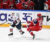 Континентальная хоккейная лига (КХЛ). Чемпионат сезона 2022/23. Плей-офф Кубка Гагарина. Финал. 4-й матч между командами "Локомотив" (Ярославль) - "Металлург" (Магнитогорск) на стадионе "Арена-2000-Локомотив". Игрок команды "Металлург" Роман Канцеров (слева) и игрок команды "Локомотив" Егор Аверин (справа) во время матча.