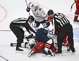 Континентальная хоккейная лига (КХЛ). Чемпионат сезона 2022/23. Плей-офф Кубка Гагарина. Финал. 4-й матч между командами "Локомотив" (Ярославль) - "Металлург" (Магнитогорск) на стадионе "Арена-2000-Локомотив". Арбитр выводит болельщика с ледовой арены во время матча.