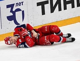 Континентальная хоккейная лига (КХЛ). Чемпионат сезона 2022/23. Плей-офф Кубка Гагарина. Финал. 4-й матч между командами "Локомотив" (Ярославль) - "Металлург" (Магнитогорск) на стадионе "Арена-2000-Локомотив". Игроки команды "Локомотив" Павел Красковский (слева) и Даниил Тесанов (в центре) во время матча.