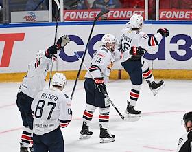 Континентальная хоккейная лига (КХЛ). Чемпионат сезона 2022/23. Плей-офф Кубка Гагарина. Финал. 4-й матч между командами "Локомотив" (Ярославль) - "Металлург" (Магнитогорск) на стадионе "Арена-2000-Локомотив". Игроки команды "Локомотив" после матча.