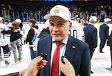 Континентальная хоккейная лига (КХЛ). Чемпионат сезона 2022/23. Плей-офф Кубка Гагарина. Финал. 4-й матч между командами "Локомотив" (Ярославль) - "Металлург" (Магнитогорск) на стадионе "Арена-2000-Локомотив". Главный тренер команды "Металлург" Андрей Разин (в центре) после матча.