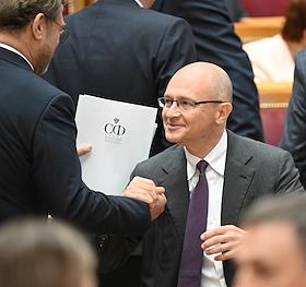 Рабочая поездка президента России Владимир Путина в Санкт-Петербург. Заседание Совета законодателей России в Таврическом дворце. Первый заместитель главы администрации президента России Сергей Кириенко (в центре) во время заседания.