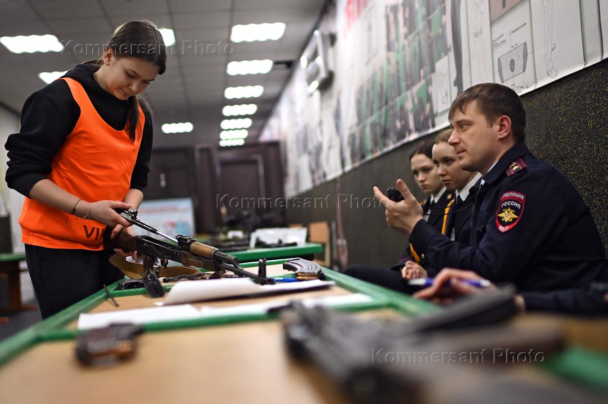 Спартакиада допризывной молодежи на базе Омской академии Министерства внутренних дел России. Участники во время спартакиады.