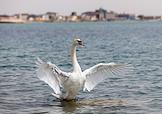 Виды Евпатории. Жанровая фотография. Лебедь в Черном море.