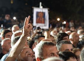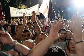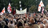 Митинг партии "Грузинская мечта" в поддержку законопроекта "О прозрачности иностранного влияния" ("об иноагентах"). Участники во время митинга.