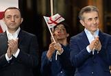 Митинг партии "Грузинская мечта" в поддержку законопроекта "О прозрачности иностранного влияния" ("об иноагентах"). Политик Ираклий Гарибашвили (слева) и политик, бизнесмен Бидзина Иванишвили (справа) на митинге.
