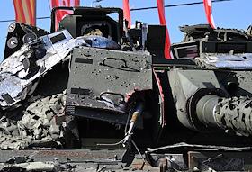 Выставка трофейного вооружения и техники, захваченных российскими военнослужащими в ходе специальной военной операции (СВО), на Поклонной горе. Трофейный американский танк M1 Abrams.