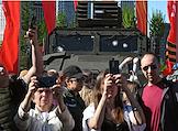 Выставка трофейного вооружения и техники, захваченных российскими военнослужащими в ходе специальной военной операции (СВО), на Поклонной горе. Посетители на выставке.