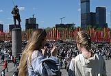 Выставка трофейного вооружения и техники, захваченных российскими военнослужащими в ходе специальной военной операции (СВО), на Поклонной горе. Посетители выставки.