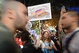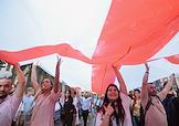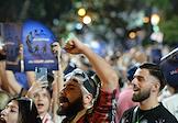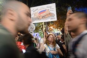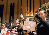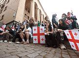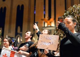 Участники акция протеста против принятия закона об иноагентах у здания парламента Грузии.