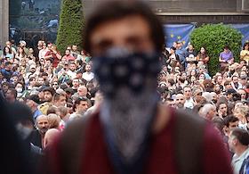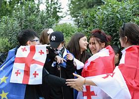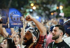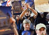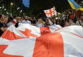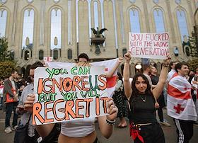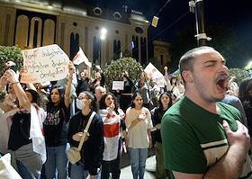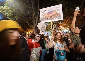 Акция протеста против принятия закона об иноагентах у здания парламента Грузии.