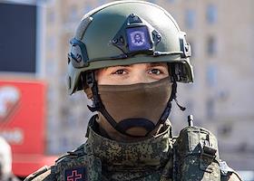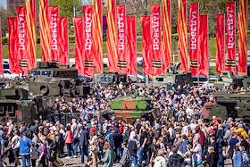 Выставка трофейной военной техники из зоны Специальной военной операции (СВО) на Поклонной горе в Москве. Жанровая фотография. Полевая кухня.