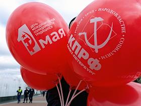 Акция КПРФ в честь Международного дня солидарности трудящихся. Церемония возложения цветов к памятнику Ленину на площади у Финляндского вокзала. Участники во время акции.