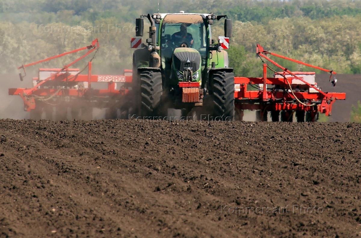 Посевная кампания в Ростовской области. Посевные работы на полях колхоза имени С.Г.Шаумяна в Мясниковском районе области. Жанровая фотография.