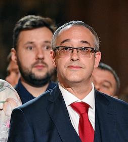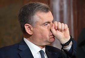 Праздничное Пасхальное богослужение в кафедральном соборном храме Христа Спасителя. Председатель Либерально-демократическая партия России (ЛДПР), руководитель фракции ЛДПР в Государственной думе России Леонид Слуцкий перед началом пасхальной службы.