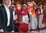 Праздничное Пасхальное богослужение в кафедральном соборном храме Христа Спасителя. Верующие перед началом пасхальной службы.