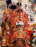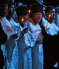 Праздничное Пасхальное богослужение в кафедральном соборном храме Христа Спасителя. Жанровая фотография.