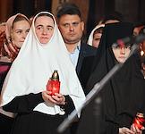 Праздничное Пасхальное богослужение в кафедральном соборном храме Христа Спасителя. Верующие во время пасхальной службы.