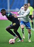 Российская Премьер-Лига (РПЛ). MИР - Чемпионат России по футболу 2023/2024. 27-й тур. Матч между командами "Динамо" (Москва) - "Сочи" (Сочи) на стадионе "ВТБ Арена". Игроки во время матча.