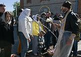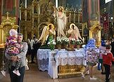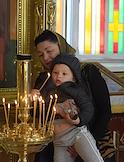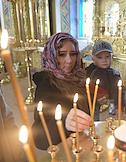 Празднование Светлого Христова Воскресения в Свято-Николаевском кафедральном соборе. Верующие во время богослужения в Великую Субботу перед чином освящения пасхальных куличей, яиц и пасхи.