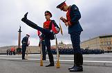 Генеральная репетиция военного парада, посвященного 79-й годовщине Победы в Великой Отечественной войне, на Дворцовой площади. Военнослужащие во время репетиции.