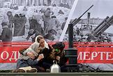 Генеральная репетиция военного парада, посвященного 79-й годовщине Победы в Великой Отечественной войне, на Дворцовой площади. Участники театрализованного представления во время репетиции.