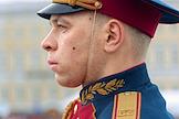 Генеральная репетиция военного парада, посвященного 79-й годовщине Победы в Великой Отечественной войне, на Дворцовой площади. Военнослужащий во время репетиции.