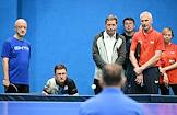 Открытый Кубок Государственной думы (ГД) России по настольному теннису в спортивном клубе "Мультиспорт" на территории Олимпийского комплекса "Лужники". Заместитель председателя Правительства России Александр Новак (в центре) во время соревнований.