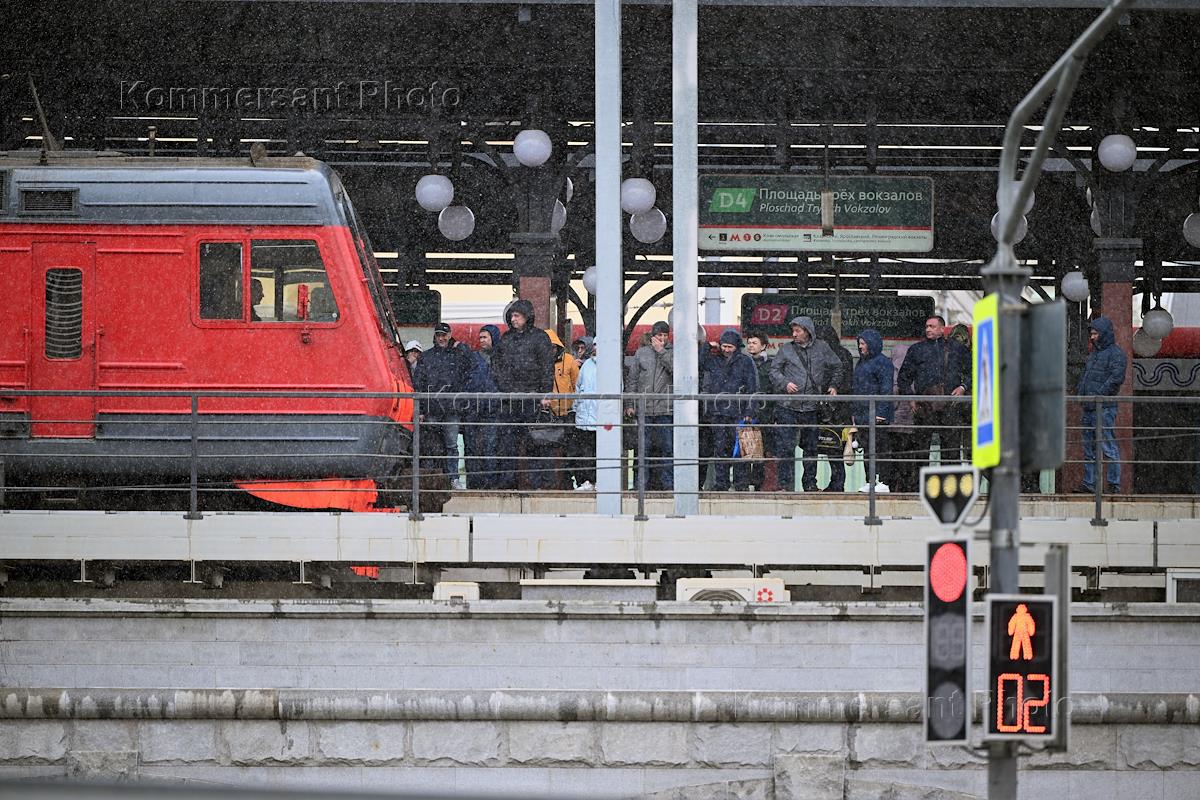 Снегопад в Москве. Жанровая фотография. Пассажиры на перроне станции метро.