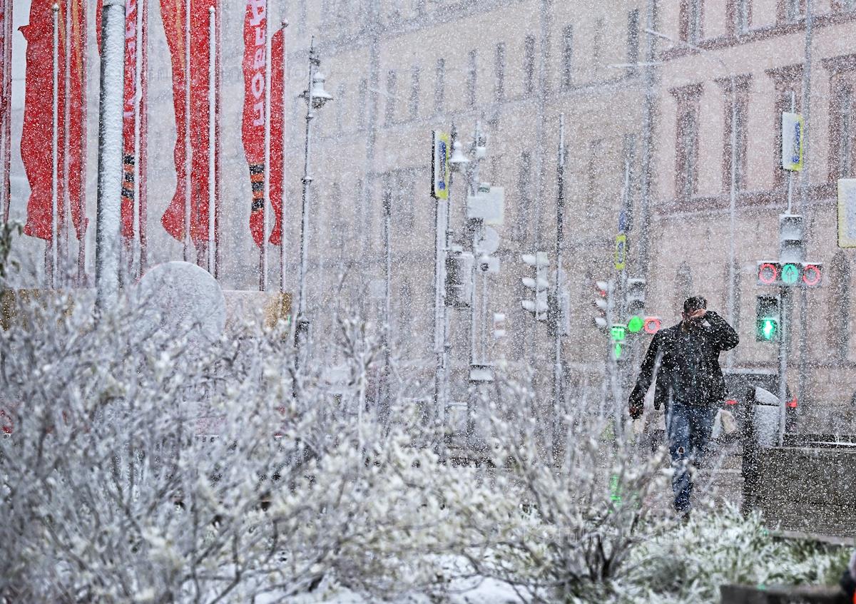 Снегопад в Москве. Жанровая фотография. Прохожие на улице во время снегопада.
