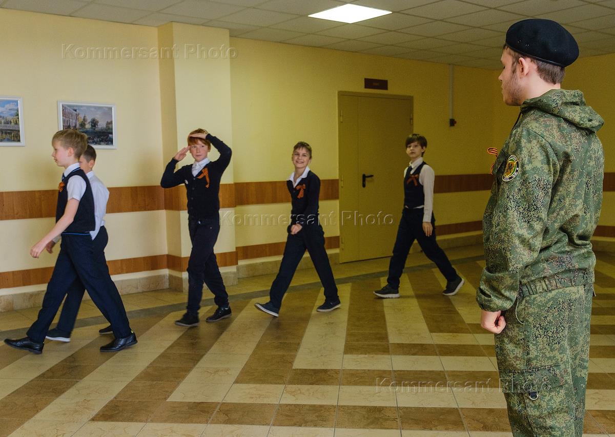 A memorial watch in honor of Victory Day was held at school No. 482. School students take part in the Guard of Honor.