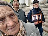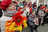 Военный парад на Красной площади, посвященный 79-ой годовщине Победы в Великой Отечественной войне. Пожилая женщина с цветами во время парада.