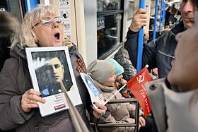 Празднование 79-ой годовщины Победы в Великой Отечественной войне на Манежной площади. Участники во время празднования.
