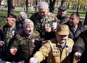 Празднование 79-ой годовщины Победы в Великой Отечественной войне на улицах города. Ветераны Вооруженных Сил России во время празднования.