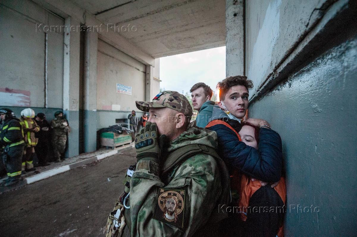 Collapse of the entrance to a residential building on Shchorsa Street.