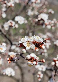 Цветение абрикосового дерева весной. Жанровая фотография.
