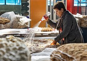 Виды Еревана. Жанровая фотография. Торговля армянским лавашом на рынке ГУМ.