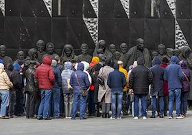 Виды Санкт-Петербурга. Жанровая фотография. Экскурсионная группа на территории Мемориала мирным жителям СССР — жертвам нацистского геноцида в годы Великой Отечественной войны.