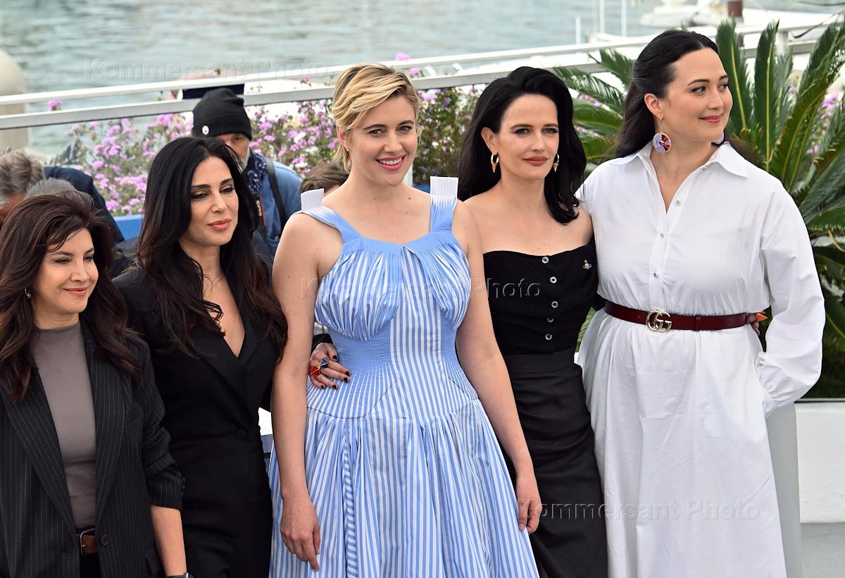 77-й международный Каннский кинофестиваль / Festival de Cannes 2024. День первый. Справа налево: члены жюри 77-го международного Каннского фестиваля - американская актриса Лили Гладстоун, французская актриса Ева Грин, американская актриса, сценарист, продюсер, режиссер Грета Гервиг и ливанская актриса, режиссер, сценарист Надин Лабаки во время фотосессии перед началом церемонии открытия.