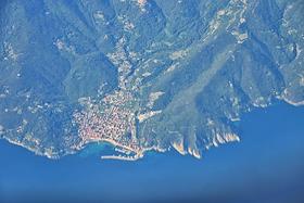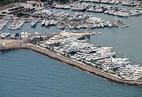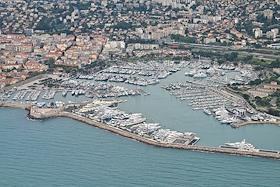 Виды Лазурного побережья из салона самолета. Причал яхт.