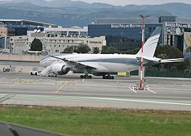 Жанровая фотография. Самолет на полосе аэропорта города Ниццы.