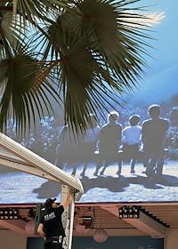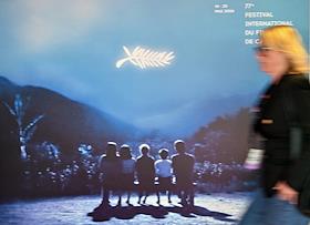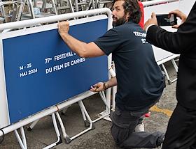 77-й международный Каннский кинофестиваль / Festival de Cannes 2024. День первый. Жанровая фотография. Рекламный баннер кинофестиваля.