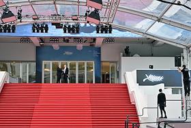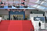 77-й международный Каннский кинофестиваль / Festival de Cannes 2024. День первый. Жанровая фотография. Красная лестница при входе в здание Дворца фестивалей и конгрессов на набережной Круазет.