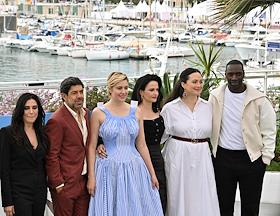 77-й международный Каннский кинофестиваль / Festival de Cannes 2024. День первый. Слева направо: члены жюри 77-го международного Каннского фестиваля - ливанская актриса, режиссер, сценарист Надин Лабаки, итальянский актер Пьерфранческо Фавино, американская актриса, сценарист, продюсер, режиссер Грета Гервиг, французская актриса Ева Грин, американская актриса Лили Гладстоун и французский актер Омар Си во время фотосессии перед началом церемонии открытия.