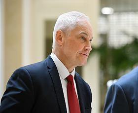 An extraordinary meeting of the Russian Federation Council to discuss candidates for the posts of heads of the Russian law enforcement agencies and the Russian Ministry of Foreign Affairs. Candidate for the post of Russian Defense Minister Andrei Belousov before the start of the meeting.