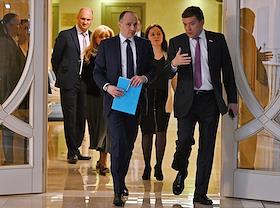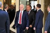 An extraordinary meeting of the Russian Federation Council to discuss candidates for the posts of heads of law enforcement agencies and the Russian Ministry of Foreign Affairs. Candidate for the post of Russian Foreign Minister Sergei Lavrov (second from left) before the start of the meeting.